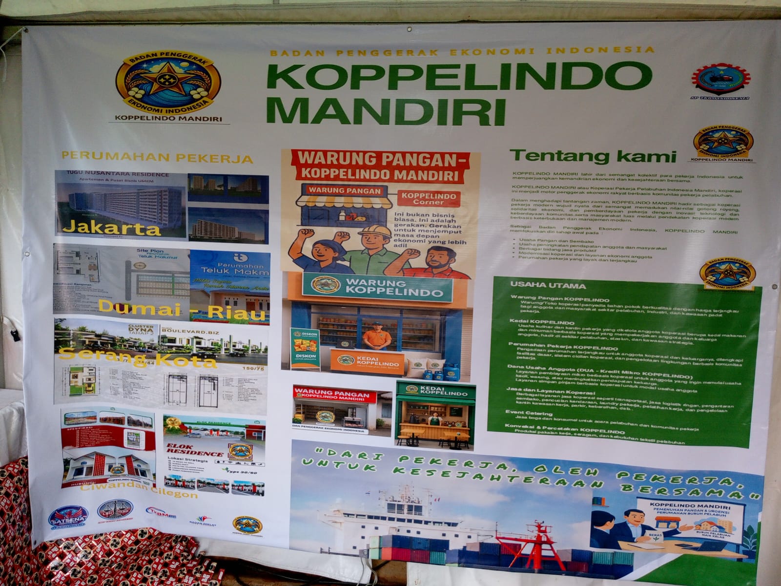 Dalam momentum penting ini, KOPPELINDO MANDIRI (Koperasi Pekerja Pelabuhan Indonesia Mandiri) turut serta dengan membuka stand informasi dan promosi program koperasi pekerja, menampilkan berbagai inisiatif unggulan yang mendukung pemberdayaan buruh pelabuhan dan masyarakat luas. Stand ini menjadi pusat edukasi dan konsultasi publik terkait peran koperasi pekerja sebagai model ekonomi alternatif yang inklusif dan berkeadilan.
