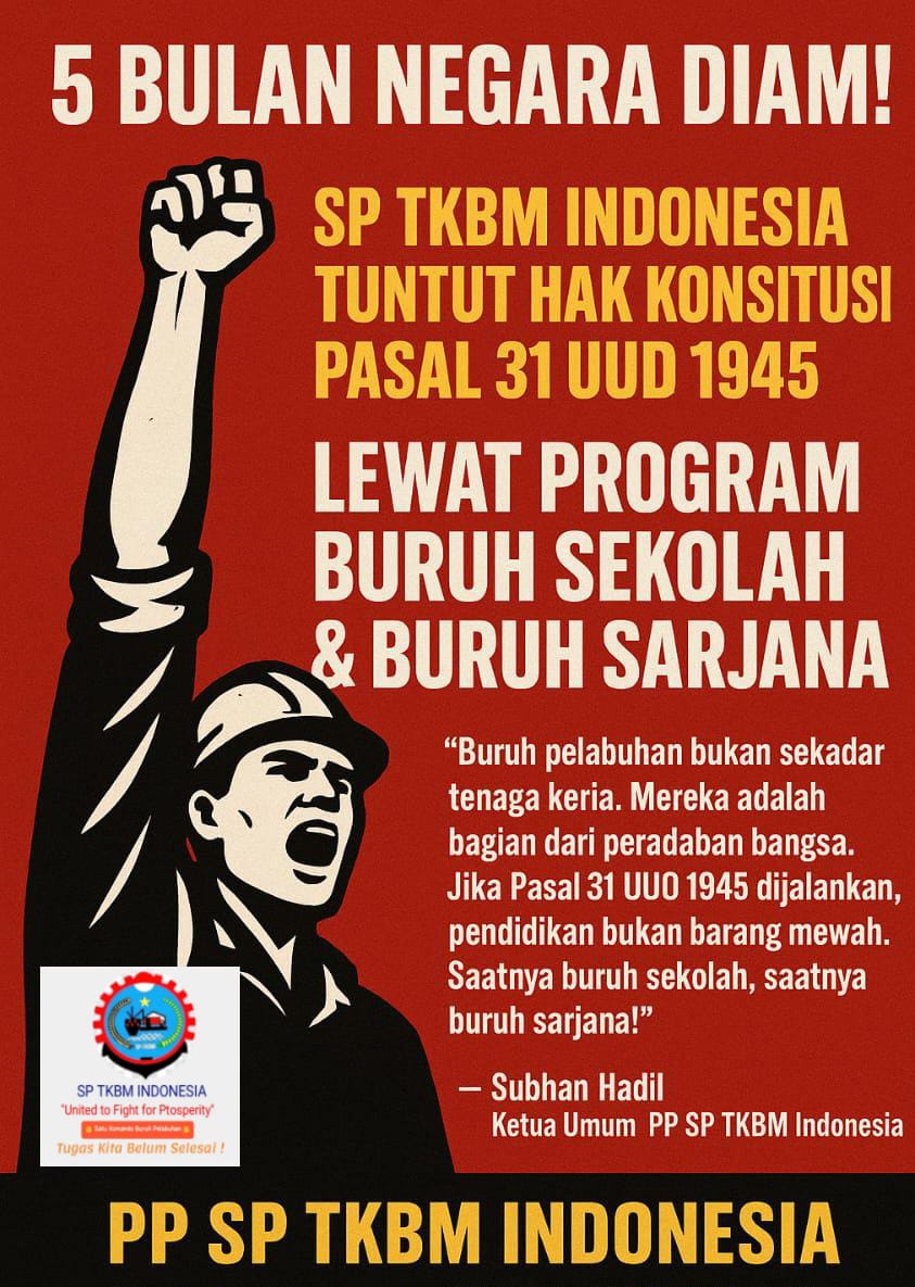5 Bulan Negara Diam ! SP TKBM Indonesia Tuntut Hak Konstitusi Pasal 31 UUD 1945 Lewat Program Buruh Sekolah & Buruh Sarjana